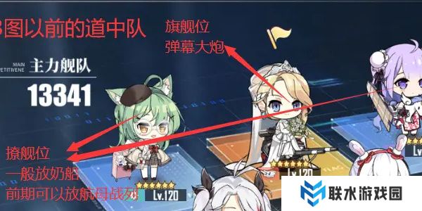 配队推荐1:2战列舰、1战巡舰、2航母舰、1治疗舰