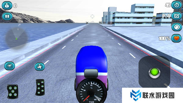 5、进入到场景内后,玩家们就可以通过屏幕中的按键控制车辆行驶了。