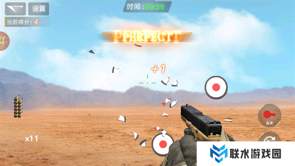 3、进入都场景内后,滑动左侧屏幕进行瞄准,点击右侧进行设计,击中圆形标靶后加分。