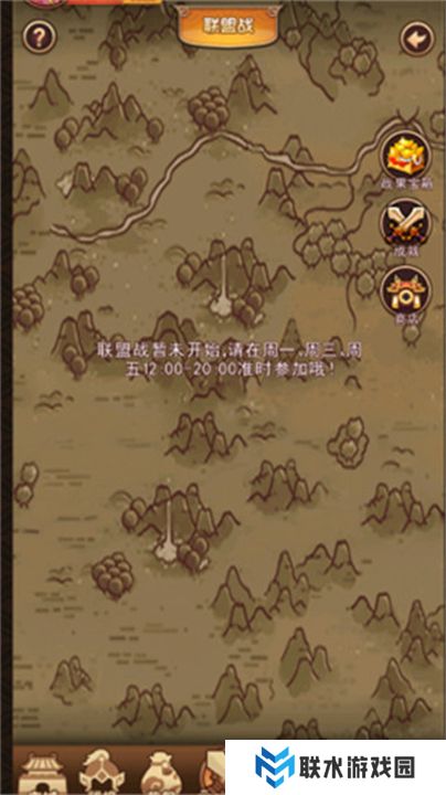 每周一、三、四、五中午12点至晚上8点进行,盟主发起战书,联盟成员参与攻防战。联盟战将获得荣誉和丰富奖励。
