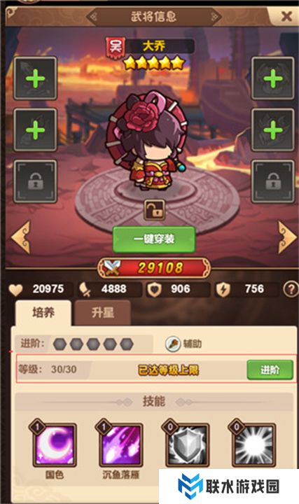 3、升阶后,武将的等级上限将得到提升,成功升阶后可以继续进行升级。