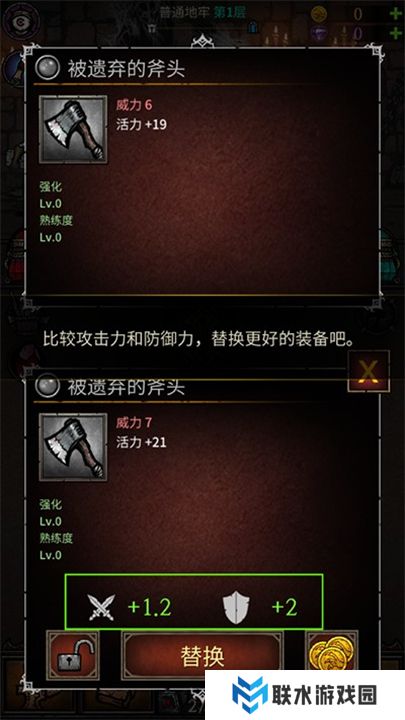 4、比较当前装备属性,替换更高性能的武器或护具。