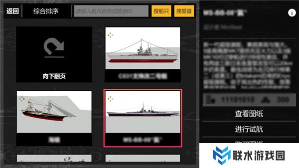 2.选定图纸后,您可以查看图纸或进行试航。通过购买图纸和获取授权两种方式来获得战舰。购买图纸和改装权可以通过战略物资进行,而授权则需消耗资源点并开始建造。