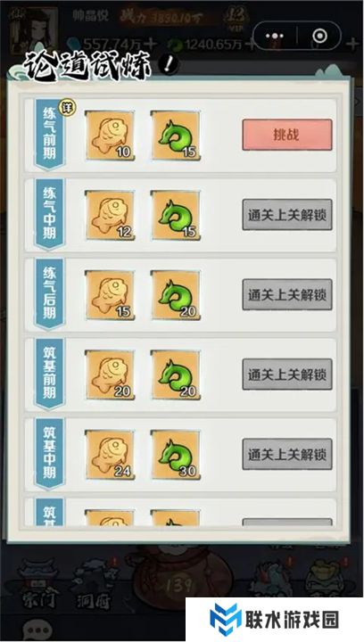 当完成一定条件后,解锁 论道试炼 功能。试炼分为两种模式: